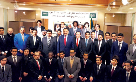 التقى صاحب السمو الملكي الأمير خالد بن سلطان بن عبدالعزيز نائب وزير الدفاع بالطلبة المبتعثين السعوديين الدارسين في اليابان ضمن برنامج خادم الحرمين الشريفين للابتعاث الخارجي في طوكيو الثلاثاء الماضي في الحفل الذي أقامته الملحقية الثقافية السعودية في اليابان بهذه المناسبة، واستمع سموه إلى شرح عن بعض الابتكارات والمخترعات التقنية للمبتعثين والإصدارات العلمية والتعليمية وقاموس مشرق الإلكتروني الذي أعدته الملحقية الثقافية بإشراف وزارة التعليم العالي. وألقى الملحق الثقافي السعودي في اليابان د.م. عصام أمان الله بخاري كلمة رحب فيها بسموه مثمناً التقاءه بأبنائه وبناته المبتعثين ضمن برنامج خادم الحرمين الشريفين للابتعاث في اليابان وأشار إلى أن الدعم الذي يلقاه الطلبة من خادم الحرمين الشريفين وسمو ولي عهده حقق التطلعات في تطوير الموارد البشرية السعودية التي سيكون لها دور في تنمية الوطن. كما رحب سعادة سفير خادم الحرمين الشريفين في اليابان د.عبدالعزيز تركستاني بسموه وثمن الزيارة التاريخية لصاحب السمو الملكي الأمير سلطان بن عبدالعزيز آل سعود ـ رحمه الله ـ لليابان عام 2006م حيث كان لها دور كبير في اطراد العلاقات السعودية اليابانية. بعدها ألقى صاحب السمو الملكي الأمير خالد بن سلطان كلمة عبر فيها عن سعادته بالالتقاء بالطلاب والطالبات المبتعثين ووجوده بينهم.