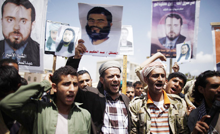 - طالب مجموعة من اليمنيين الولايات المتحدة الأمريكية بإطلاق سراح المعتقلين اليمنيين من معتقل غوانتنامو وذلك أمام سفارة واشنطن بالعاصمة اليمنية صنعاء...رويترز