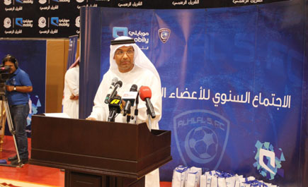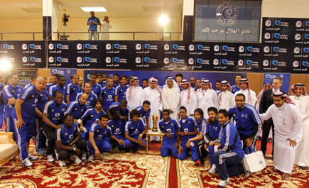 أقامت شركة موبايلي الشريك الإستراتيجي لنادي الهلال امس بمقر النادي حفلا للأعضاء البلاتينيين بمناسبة تحقيق كأس ولي العهد بحضور رئيس الهلال الامير عبدالرحمن بن مساعد والرئيس التنفيذي لشركة موبايلي المهندس خالد الكاف وشارك في الحفل منسوبو الادارة الزرقاء إضافة للاعبي الفريق الاول والجهازين الفني والاداري، وتخلل الحفل كلمة من رئيس النادي اشاد فيها بالدور الكبير الذي تلعبه موبايلي في الشراكة الاستراتيجية، كما ألقى الكاف كلمة هنأ فيها الهلاليين باللقب وتمنى استمرار الشراكة بين الطرفين وقال: «نادي الهلال حقق 242 انتصارا بشعار موبايلي منذ إبرام العقد، بواقع 185 فوزا بنسبة 65% من مشاركات الفريق وسجل الهلال بشعار موبايلي 467 هدف « . من جهة أخرى عاود لاعبو فريق الهلال الأول لكرة القدم تدريباتهم مساء امس الاثنين بعد أن كسبوا مضيفهم «الفيصلي» مساء الاحد بهدف وحيد حمل إمضاء اللاعب نواف العابد، واقتصر المران على التدريبات الاسترجاعية للاعبين الذين شاركوا في اللقاء بصفة أساسية، فيما أدّى البقية مناورة على كامل مساحة الملعب أمام الفريق الأولمبي، فيما منعت الظروف العائلية لقائد الفريق «ياسر القحطاني» من المشاركة في مران الامس على أن يكمل برنامجه العلاجي والمعد له من قبل الجهاز الطبي مساء اليوم الثلاثاء. يشار إلى أن مران الفريق الهلالي اليوم سيقام في تمام الساعة السابعة مساءً، وسيحاط بالسرية التامة أمام وسائل الإعلام والجماهير، وذلك كما جرت العادة بإغلاق التدريبات قبل اللقاءات الرسمية بـ48 ساعة. وعلى خط آخر علمت (الجزيرة) ان الشريك الاستراتيجي بنادي الهلال (موبايلي) بصدد التوقيع مع شركة (تطوير الرياضية) من اجل توفير ملابس فرق النادي للموسم المقبل اذ سيكون الموسم الاخير بشراكة الهلال وموبايلي. المهندس الكاف يلقي كلمته خلال الاحتفال صورة جماعية لمسؤولي الهلال ومسؤولي موبايلي وعدد من لاعبي فرق النادي رئيس الهلال مرحباً بمسؤولي موبايلي.