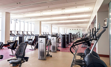كما تضم القرية الرياضية الطلابية أربع صالات مخصصة للعبة الإسكواش، كما جهزت المدينة الجامعية بصالات لياقة بدنية تم دعمها بأدوات خاصة في هذا الشأن لتكون جاهزة لمستخدميها، كذلك صالات جمباز وألعاب قوى تتسع لنحو 90 شخصاً، وصالة رياضية خاصة بالطب الرياضي، وجاكوزي، وحمامات بخار وساونا مع جميع الخدمات. وتضم المرافق الترفيهية قاعات استراحة مزودة بوسائل الترفيه اللازمة، ومطعماً مقسماً للعائلات والعزاب، ومقهى خارجياً ومحلات للهدايا والمستلزمات الضرورية.