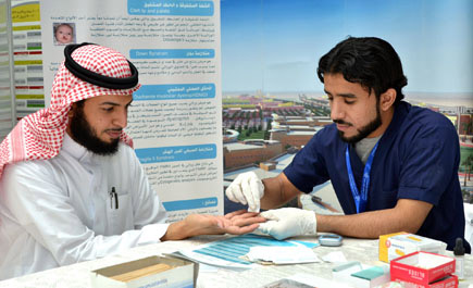 دشن معالي مدير جامعة سلمان بن عبدالعزيز الدكتور عبدالرحمن بن محمد العاصمي وحدة الطب الوراثي الجزيئي التابعة لكلية العلوم الطبية التطبيقية وانطلاق أولى فعالياتها «حملة الأمراض الوراثية في صباح يوم الاثنين 12-6-1434هـ بالمدينة الجامعية في الخرج.