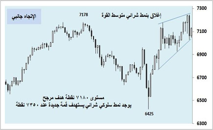 نمط شرائي مرجح مع محاولة جادة لاختراق مستوى 7180 نقطة الأسبوع المقبل.