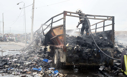- رجال الإطفاء الهايتيون يسيطرون على حريق ضخم بأحد الأسواق نتيجة انفجار مواد كيميائية كانت مخزنة بشكل سيئ... رويترز