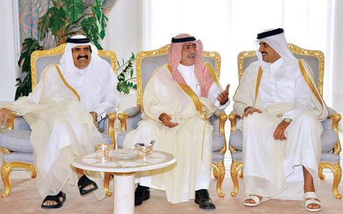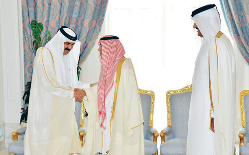 استقبل صاحب السمو الشيخ تميم بن حمد آل ثاني أمير دولة قطر بمقر الديوان الأميري أمس صاحب السمو الملكي الأمير مقرن بن عبدالعزيز آل سعود النائب الثاني لرئيس مجلس الوزراء المستشار والمبعوث الخاص لخادم الحرمين الشريفين. وقدم الأمير مقرن بن عبدالعزيز التهاني الأخوية من خادم الحرمين الشريفين الملك عبدالله بن عبدالعزيز آل سعود وصاحب السمو الملكي الأمير سلمان بن عبدالعزيز آل سعود ولي العهد نائب رئيس مجلس الوزراء وزير الدفاع -حفظهما الله- وحكومة وشعب المملكة العربية السعودية لسمو الشيخ تميم بن حمد آل ثاني بمناسبة توليه مقاليد الحكم في دولة قطر، داعيا الله العلي القدير أن يمن على قطر حكومة وشعبا بدوام الاستقرار والرخاء في ظل قيادة سموه الحكيمة، وبما يحقق المزيد من الازدهار للشعب القطري الشقيق، منوها سموه بما يربط البلدين والشعبين الشقيقين من علاقات أخوية متميزة.
