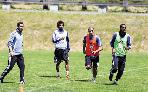 واصل لاعبو فريق «الهلال» الأول لكرة القدم امس الاثنين تدريباتهم على فترتين صباحية ومسائية في اليوم الرابع من المعسكر الذي يقيمه الفريق بالنمسا، واشتملت الحصة الصباحية على الجانبين اللياقي والتكتيكي اختتمها مدير الجهاز الفني «سامي الجابر» بتدريبات خاصة على الاستحواذ والضغط على حامل الكرة، فيما اقتصر المران المسائي على اختبارات بدنية إضافةً إلى أداء تدريبات استرجاعية في النادي الصحي بمقر إقامة الفريق وسط مشاركة كافة اللاعبين عدا اللاعب «ياسر القحطاني»؛ نظير شعوره بآلام في مفصل القدم، حيث خضع لبرنامج تأهيلي تحت إشراف الجهاز الطبي، في الوقت نفسه أجرى المحترف البرازيلي «ويسلي لوبيز» تدريباته بالجري حول الملعب، بعد وصوله إلى مقر إقامة الفريق مساء أمس الاول، عقب أن أفصح عن رغبته بالإلتحاق بالفريق، حتّى تبت إدارة النادي في العروض الرسمية المقدمة والمحتملة له. وفي شآن آخر، ينتظر ان يكون قد وصل المنضم حديثاً لصفوف الفريق الأول اللاعب «ناصر الشمراني» في وقت مبكر من صباح اليوم لمعسكر الفريق بعد توقيعه لعقد انتقاله للازرق بحضور رئيس الهلال مساء الاحد الماضي. يشار إلى أن الفريق الهلالي سيؤدي تدريباته اليوم «الثلاثاء» على فترتين صباحية ومسائية.