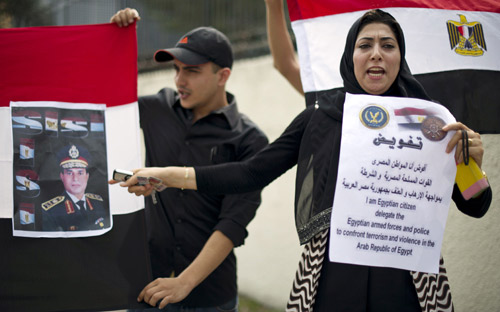 يأتي ذلك بعد ان احتشد الملايين من مؤيدي الفريق عبد الفتاح السيسي وزير الدفاع في ميداني التحرير والاتحادية أمس تلبية لدعوته التي أطلقها منذ يومين للمصريين للخروج إلى الميادين لمنحه تفويضاً بمحاربة العنف والإرهاب، وهى الدعوة التي أثارت ردود فعل متباينة بعد أن رحبت بها معظم القوى التي شاركت في مظاهرات 30 يونيو، فيما رفضها البعض الآخر الذين أكدوا أن الجيش والدولة ليسا في حاجة إلى تفويض لمحاربة الإرهاب.