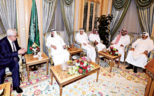 عقد خادم الحرمين الشريفين الملك عبدالله بن عبدالعزيز آل سعود وأخوه فخامة الرئيس محمود عباس رئيس دولة فلسطين اجتماعاً في قصر الصفا بمكة المكرمة مساء أمس، وفي بداية الاجتماع رحب خادم الحرمين الشريفين بأخيه فخامة الرئيس الفلسطيني في المملكة العربية السعودية.