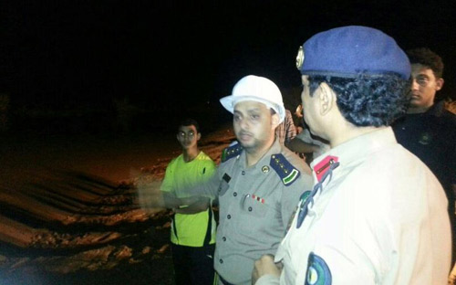 عثرت فرق الدفاع المدني في (أبوعريش) على الطفل الغريق في وادي مقاب يوم أمس الأول، حيث كانت فرق الدفاع المدني متواجدة بعد نزول المطر مباشرة لتحذير المواطنين من السيول في تلك المنطقة، وفي لحظة مداهمة السيل كان الطفلان يلهوان خارج قريتهما الدوشية بمحافظة أبو عريش، حيث أنقذت الفرق المتواجدة من الدفاع المدني طفلاً يبلغ من العمر 11 سنة من الغرق، فيما لم تستطع اللحاق بالآخر والذي يبلغ من العمر 7 سنوات حيث جرفه السيل لقوته واستمر البحث عنه لعشر ساعات متواصلة بتواجد وإشراف مدير الدفاع المدني بمحافظة أبو عريش النقيب منير شتيفي.