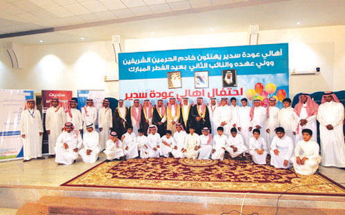 احتفل أهالي عودة سدير وللعام الخامس على التوالي بعيد الفطر المبارك, بحضور رئيس المركز محمد بن منور العتيبي في قصر جمّاز بعودة سدير. وقد افتتح الحفل المقدم الأستاذ/ أحمد بن محمد الحنو الذي رحب بالحضور, ثم رتل القارئ/ مازن بن عبدالعزيز المزيني آيات من القرآن الكريم، بعد ذلك ألقيت كلمة الأهالي ألقاها نيابة عنهم معالي الأستاذ الدكتور/ عبدالله بن محمد الفيصل مدير جامعة الملك سعود الأسبق هنأ فيها القيادة بالعيد السعيد ورحب فيها بالحضور وأثنى على جهود الجميع في السعي لخدمة العودة بما يليق بها وبما تتمتع به من تاريخ ومن حاضر مشرق, ثم كلمة رجل الأعمال عبدالعزيز بن محمد القاسم تحدث عن مراحل بناء قصر «جمّاز» والذي تم إنشاؤه بدعم من الأهالي وشكر الجميع على دعمهم وتجاوبهم في كل ما يخدم العودة, ثم قصيدة ألقاها الشاعر ناصر بن راشد الحنو, كما ألقى معالي الأستاذ / عبدالرحمن بن إبراهيم أبوحيمد كلمة بهذه المناسبة شكر جميع أهالي العودة على ما يقدمونه من دعم وجهود للنهوض بها, ثم أوبريت (فرحة أهل) , تلاه عرض مرئي بعنوان (مسيرة إنجاز) يستعرض المشاريع التي تم تنفيذها خلال عام في عودة سدير بدعم من الأهالي وما تحقق في القرية التراثية من تجاوب من الأهالي مع حملة «أولاد العود عيدوها» لإعادة تأهيلها وترميم بيوتها. وستعرض الحدث الأبرز وهو الانتهاء من مشروع قصر جمّاز الذي بُدئ العمل به في شهر محرم 1434هـ وانتهى العمل فيه خلال فترة وجيزة وأقيم حفل هذا العام فيه, وخلال الحفل تم تكريم بعض الشخصيات ممن قدموا وساهموا ببعض الأعمال في مختلف المجالات للعودة حيث تم تكريم كل من :