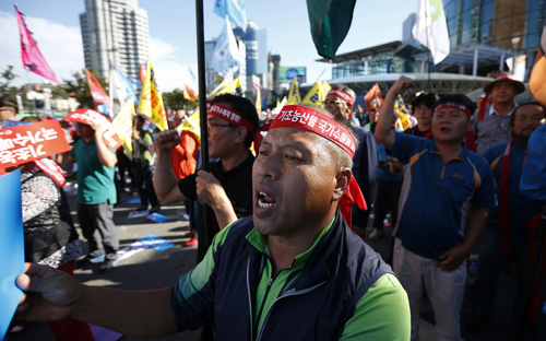 - مزارعون كوريون جنوبيون يتظاهرون ضد اتفاقية التجارة الحرة بين كوريا والصين.. رويترز
