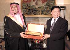 وعقب الاجتماع حضر صاحب السمو الملكي الامير سلمان بن عبدالعزيز ومرافقوه حفل العشاء الذي اقامه عمدة حكومة بكين تكريما لسموه بهذه المناسبة.