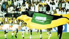 حمل لاعبو الفريق الاتحادي اطواقاً من الورود اثناء هبوطهم الى ارض الملعب وقدموها الى زملائهم لاعبي الاهلي قبل بداية اللقاء في بادرة جميلة من الاتحاديين.