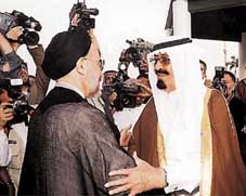 أقام صاحب السمو الملكي الأمير عبد الله بن عبد العزيز ولي العهد ونائب رئيس مجلس الوزراء ورئيس الحرس الوطني حفل غداء تكريما لفخامة الرئيس سيد محمد خاتمي رئيس الجمهورية الاسلامية الايرانية في قصر سموه امس.