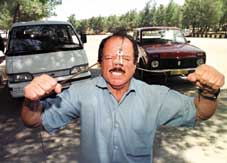 فهمي الحسين (64 سنة) عراقي الجنسية يجر سيارتين بحبال مثبتة في انفه وأذنيه امس في احد شوارع العاصمة الاردنية فهمي يسمى نفسه شمشون العرب وهو يقوم اولا بسحب السيارات بيديه لبناء قوة دافعة ثم يواصل جرها بأنفه واذنيه وهو يقول، انه الوحيد في العالم الذي حقق هذا الانجاز.