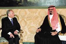 وقد عقد فخامة الرئيس تشامبي وصاحب السمو الملكي الامير عبد الله بن عبد العزيز اجتماعاً ثنائياً مغلقاً جرى خلاله تبادل الاحاديث الودية وبحث العلاقات الثنائية بين البلدين وسبل تعزيزها بما يخدم مصالحهما المشتركة,كما جرى استعراض الاوضاع الدولية الراهنة وفي مقدمتها قضية الشرق الاوسط والاراضي المحتلة والوضع في كوسوفا.