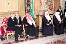 شرف صاحب السمو الملكي الأمير عبدالله بن عبدالعزيز ولي العهد ونائب رئيس مجلس الوزراء ورئيس الحرس الوطني مساء امس حفل العشاء الذي اقامه تكريما لسموه صاحب السمو الملكي الأمير محمد بن نواف بن عبدالعزيز سفير خادم الحرمين الشريفين لدى ايطاليا في قصر كولونا بروما,وحضر حفل العشاء رئيس البرلمان الايطالي لوشمانو فيولانت ومعالي وزير الخارجية الايطالي لامبرتو ديني وعدد من الوزراء الايطاليين وأعضاء السلك الدبلوماسي المعتمدين في روما والفاتيكان كما حضره اعضاء الوفد الرسمي المرافق لسمو ولي العهد.