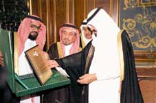 من ناحية اخرى استقبل صاحب السمو الملكي الامير عبد الله بن عبد العزيز ولي العهد ونائب رئيس مجلس الوزراء ورئيس الحرس الوطني في مكتب سموه بالديوان الملكي بقصر اليمامة امس رئيس الجمعية الجغرافية السعودية الدكتور عبد العزيز بن عبد اللطيف ال الشيخ واعضاء الجمعية الذين قدموا شكرهم وتقديرهم لسمو ولي العهد على ما وجدته الجمعية من دعم وتشجيع من صاحب السمو الملكي الامير عبد الله بن عبد العزيز حتى تمكنت من اصدار موسوعتها الجغرافية الاولى عن المملكة.