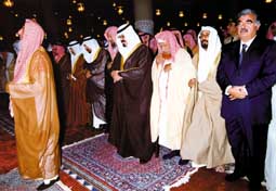 كما أدى الصلاة مع سمو نائب خادم الحرمين الشريفين اصحاب السمو الملكي الأمراء وأصحاب الفضيلة العلماء والمشايخ يتقدمهم سماحة الشيخ عبدالعزيز بن عبدالله آل الشيخ المفتي العام للمملكة العربية السعودية ومعالي رئيس مجلس الشورى وأصحاب المعالي الوزراء وصاحب السمو الشيخ خليفة بن سلمان آل خليفة رئيس وزراء دولة البحرين وسمو الشيخ سلمان بن حمد آل خليفة ولي العهد القائد العام لقوة الدفاع بدولة البحرين ونجل أمير دولة قطر سمو الشيخ تميم بن حمد بن خليفة آل ثاني ودولة رئيس وزراء لبنان السابق رفيق الحريري ورئيس وزراء الجزائر السابق ورئيس حزب التجمع الوطني الديمقراطي الجزائري احمد اويحيى ورئيس المؤسسة العامة للرياضة والشباب في دولة البحرين الشيخ عيسى بن راشد آل خليفة ورئيس اللجنة الاولمبية الكويتية الشيخ أحمد بن فهد الأحمد الصباح وكبار المسؤولين من مدنيين وعسكريين وجموع غفيرة من المواطنين,وعقب الصلاة استقبل نائب خادم الحرمين الشريفين اصحاب السمو الملكي الأمراء واصحاب الفضيلة العلماء والمشايخ ومعالي رئيس مجلس الشورى واصحاب المعالي الوزراء والمواطنين والضيوف الذين قدموا للمشاركة في الصلاة على الفقيد وتقديم التعازي والمواساة لنائب خادم الحرمين الشريفين واصحاب السمو الملكي الامراء.