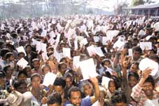 توجه سكان تيمور الشرقية بكثافة وبهدوء الى صناديق الاقتراع مع بدء عمليات التصويت صباح امس الاثنين بالرغم من تهديدات الميليشيات، للاختيار بين الاستقلال اوالبقاء جزءا من اندونيسيا.