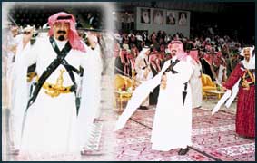 نيابة عن خادم الحرمين الشريفين الملك فهد بن عبدالعزيز آل سعود رعى صاحب السمو الملكي الأمير عبدالله بن عبدالعزيز ولي العهد نائب رئيس مجلس الوزراء رئيس الحرس الوطني الرئيس الاعلى للمهرجان الوطني للتراث والثقافة مساء امس الأول الاحد ثالث ايام عيد الفطر المبارك الحفل الكبير للعرضة السعودية في عامه الثاني والذي اقامه الحرس الوطني ضمن نشاطات المهرجان الوطني الخامس عشر للتراث والثقافة وذلك على صالة الألعاب الرياضية المغلقة بطريق الدرعية في الرياض.