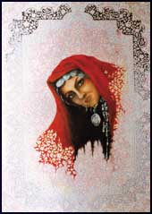 لوحة الفنانة رنا باخشوين التي استطاعت بامكاناتها ومقدرتها الكبيرة في اعطاء الفن التشكيلي صورة جديدة للجيل الصاعد من الفنانين التشكيليين إلا انها استطاعت اثبات ذاتها واعطاء صبغة لعطائها التشكيلي ربما لا اقول هذا من فراغ ولكن لمعرفتي برنا أولاً وللامكانات التي تختص بها وتمتلكها وقبل هذا وذاك البصمة التي اضافتها للفن السعودي من خلال هذا المعرض واعتبارها أول فنانة ترسم على السجاد وليس لمجرد الرسم وإنما لتمكنها من التعامل مع هذه الخامة واتقانها التكنيكي في هذا العمل واسلوبها المميز اكد على حقيقة موهبتها في رسم البورترينة اضافة الى الامكانات العالية في تقديم عمل متكامل مشحون بمشاعر الفنان الصادق الذي يرغب في تقديم شيء جديد وبجراءة ودون انتظار النتيجة او فشل التجربة من عدمها وتكامل هذا العمل وعرضه كتجربة جديدة جاءت عبارة عن معزوفة وقطعة موسيقية لامست مشاعر الجميع وجذبت انظار الحاضرات وعلى وجه الخصوص راعية هذا المعرض سمو الاميرة سلطانة البراهيم.