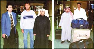 * حضر من نادي النصر لاستقبال أحمد بهجا الذي ابدا عليه التعب والارهاق اداري النصر عبدالله الهويشل.