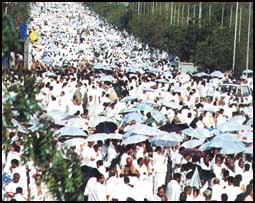 * بيسر وسهولة وطمأنينة ووسط طاقات وامكانيات هائلة وفرتها حكومة خادم الحرمين الشريفين حفظه الله وقف أكثر من مليوني حاج منذ الساعات الأولى من صباح أمس الاربعاء التاسع من ذي الحجة على صعيد عرفات حيث مكثوا بها حتى لحظات الغروب اقتداء بسنة الرسول الكريم صلى الله عليه وسلم ثم نفروا الى مزدلفة لجمع الجمرات حيث يقضون اليوم العاشر من ذي الحجة أول ايام التشريق بمنى.وقد سارت حركة الحجيج أمس في المشاعر المقدسة بسهولة وانسيابية وكانت الحالة الأمنية ممتازة.