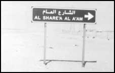 وفي هذه الصورة التي التقطت على طريق الصقيعاء بوادي الدواسر نلاحظ هذه الخدمة الجليلة إلا ان ما يلاحظ عليها هو الترجمة اللفظية للشارع العام رغم انه ليس اسم علم وهنا لن يستفيد منها من يعتمد على اللغة الانجليزية من سالكي الطريق، وكان الاولى ان تكون الترجمة للمعنى The Main Street حتى تتحق الفائدة,, سائلا الله للجميع دوام التوفيق.