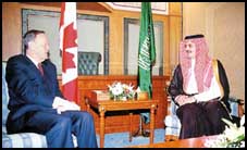 من جهة أخرى اجتمع دولة رئيس وزراء كندا جان كريتيان والوفد المرافق له في قصر المؤتمرات بجدة أمس مع صاحب السمو الملكي الأمير سعود الفيصل وزير الخارجية.