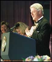 وسخر كلينتون ايضا ممن وجهوا التهم اليه عند محاولة (اقالته) قائلا: ان الوقت يمر بسرعة بالنسبة الى الجمهوريين في الكونغرس ولم يعد امامهم سوي سبعة اشهر للتحقيق بشأني لكنه وقت قصير جدا مقارنة بالأسئلة الكثيرة المتبقية,واضاف لقد نقص وزني خمسة كلغ في الاشهر الماضية,, اين ذهبت،,, لم اعرض الامر على لجنة تحكيم مستقلة في اشارة ساخرة الى حماس الجمهوريين المفرط خلال ولايتيه الرئاسيتين الى فتح تحقيقات كيفما اتفق,وختم كلينتون بالقول بلهجة جادة للمرة الاولى خلال السهرة انه استمتع كثيرا بتلك السنوات الثماني، وقال لقد قرأت في كتب التاريخ ان الرؤساء الآخرين قالوا ان البيت الابيض كان بمثابة سجن وانهم كانوا على عجلة من الرحيل لكنني لا ادري عن ماذا يتكلمون فقد امضيت وقتا ممتعا وكان من دواعي سروري وفخري ان اخدم بلادي وان استمتع بذلك في الوقت نفسه.