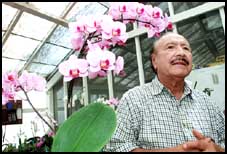 * ماليبو كاليفورينا أ,ف,ب: أمادو فاسكويس 83 عاما يقف بجوار باقة من زهرات الاوركيد في مزرعته التي تضم 800 الف زهرة في ماليبو بولاية كاليفورنيا، فاسكويس هاجر من المكسيك الى الولايات المتحدة ليؤسس نشاطاً تجاريا متمثلا في زراعته لأكثر من مليوني زهرة أوركيد كل عام وتصديرها للخارج وقد حصل فاسكويس على عدة جوائز دولية لدوره في زراعة انواع جديدة من ازهار الاوركيد.
