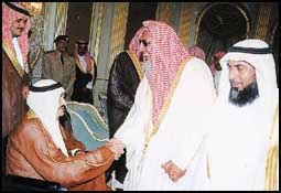 استقبل خادم الحرمين الشريفين الملك فهد بن عبدالعزيز آل سعود في قصر السلام امس سماحة الشيخ عبدالعزيز بن عبدالله آل الشيخ مفتي عام المملكة ورئيس هيئة كبار العلماء وادارة البحوث العلمية والافتاء ومعالي وزير العدل الدكتور عبدالله بن محمد آل الشيخ واصحاب الفضيلة العلماء رؤساء المحاكم الشرعية بالمملكة.
