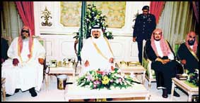 استقبل صاحب السمو الملكي الامير سلطان بن عبدالعزيز النائب الثاني لرئيس مجلس الوزراء ووزير الدفاع والطيران والمفتش العام في مكتبه في الديوان الملكي بقصر السلام بعد ظهر أمس سماحة الشيخ عبدالعزيز بن عبدالله آل الشيخ مفتي عام المملكة ورئيس هيئة كبار العلماء وادارة البحوث العلمية والافتاء ومعالي وزير العدل الدكتور عبدالله بن محمد آل الشيخ وأصحاب الفضيلة العلماء رؤساء المحاكم الشرعية بالمملكة.