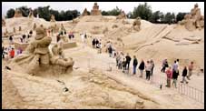 لقطة من منتزه مودرزاند بهولندا الذي قام اكثر من 88 نحاتاً بتحويله الى متحف من الرمال حيث تم نحت عشرات المجسمات بواسطة 13,000 متر مكعب من الرمال, والاعمال الفنية هذه مستوحاة من الثقافة اليابانية حيث اقيم هذا المعرض بالعلاقة الطويلة التي تربط اليابان بهولندا.