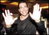 النجم السينمائي جان كلاود فان دام يبتسم لعدسات التصوير في احد فنادق العاصمة اللبنانية بيروت بعد وصوله بناء على دعوة محطة LBC الفضائية لاجراء مقابلة تلفزيونية معه.