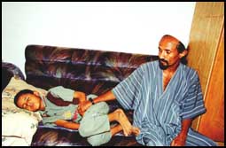 ثم انتقلنا الى الأهالي لعزائهم ومواساتهم بمنزلهم الكائن ببحرة حيث استقبلنا عبده ابراهيم والد المتوفى فواز وابنه المصاب التي بترت قدماه بسام عبده يقول: كنت بمنزلي ولم أكن متواجدا بموقع الحادث واذا بي أسمع صوت الانفجار وان أبنائي قد وقع عليهم الحادث.