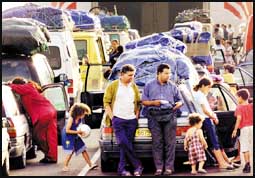 المهاجرون من شمال افريقيا ينتظرون عند الحدود لإكمال عودتهم الى ديارهم في جنوب اسبانيا حوالي 000 ,20 سيارة تعبر الحدود يوميا في موسم الاجازات.