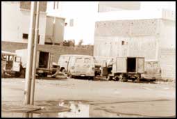 عدد من سيارات النقل التابعة لاحدى شركات نقل البريد البري لقرى منطقة حائل التي كانت تعمل لدى بريد حائل متعطلة و (رابضة) في احد الاحياء البعيدة عن موقع البريد بعد انتهاء مدة التعاقد مما جعلها مرتعا خصبا لخشاش الارض والحيوانات السائبة وقلقا دائما لاصحاب الحي اللقطة في حي المنتزه الشرقي غرب دوار المنفاخ.