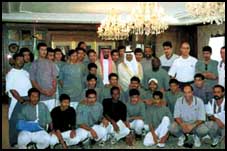 بعد ذلك تسلم سمو امير منطقة تبوك هدية تذكارية بهذه المناسبة من رئيس بعثة نادي الطائي عبدالعزيز اليعقوب ثم التقطت الصور التذكارية لسمو امير المنطقة مع لاعبي نادي الطائي وجهازيه الفني والاداري.