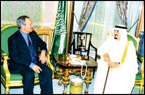 وحضر الاستقبال صاحب السمو الملكي الامير سعود الفيصل وزير الخارجية ومعالي رئيس الديوان الملكي الاستاذ محمد النويصر ومعالي وزير الدولة وعضو مجلس الوزراء الدكتور عبدالعزيز الخويطر,