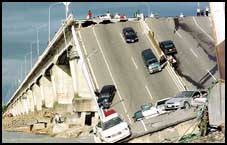 فوجئ سائقو السيارات الذين كانوا يسيرون بأمان فوق هذا الجسر الذي يربط بين مدينتي بينج تونج وكايوسينج في تايوان بانهيار احد اجزائه وسقوط اكثر من 16 سيارة كانت عليه واسفر الحادث عن اصابة 22 شخصاً فقط.