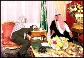 استقبل صاحب السمو الملكي الامير عبدالله بن عبدالعزيز ولي العهد ونائب رئيس مجلس الوزراء ورئيس الحرس الوطني بمقر إقامة سموه في نيويورك الليلة قبل الماضية الرئيس ياسر عرفات رئيس دولة فلسطين.