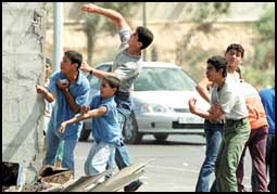 وذكر شهود عيان ان جنديا اسرائيليا أصيب أيضا برشق بالحجارة خلال هذه التظاهرة التي ضمت نحو 200 طالب فلسطيني ونظمت بالقرب من نقطة عسكرية اسرائيلية على الطريق المؤدي الى مستوطنة نتساريم اليهودية في قطاع غزة وسط القطاع.