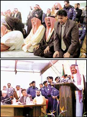 بعد ذلك تفضل سمو الأمير سلمان بافتتاح المسجد ثم أدى سموه صلاة الظهر والعصر جمعا وقصراً.
