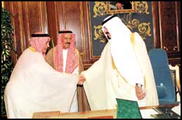 من جهة أخرى استقبل صاحب السمو الملكي الأمير عبدالله بن عبدالعزيز ولي العهد و نائب رئيس مجلس الوزراء ورئيس الحرس الوطني في مكتب سموه بالديوان الملكي في قصر اليمامة أمس معالي رئيس مدينة الملك عبدالعزيز للعلوم والتقنية الدكتور صالح بن عبدالرحمن العذل ونواب الرئيس وكبار المسؤولين الذين قدموا للسلام على سمو ولي العهد ونقل تهانيهم لسموه على الانجاز السعودي باطلاق قمري الاتصالات السعوديين القمر السعودي 1/أ والقمر السعودي 1/ب اللذين تم اطلاقهما مؤخرا.