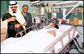 وكان صاحب السمو الملكي الامير عبدالله بن عبدالعزيز قد قام بزيارة بعد ظهر امس للجرحى الفلسطينيين المصابين برصاص العدو الاسرائيلي والذين امر خادم الحرمين الشريفين بعلاجهم في مستشفيات المملكة وتفقد سموه حالاتهم في مستشفى الملك فيصل التخصصي بالرياض وقام بتقليدهم نيابة عن خادم الحرمين الشريفين وسام الملك عبدالعزيز من الدرجة الثالثة.
