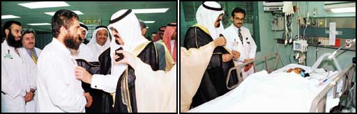 واطمأن سموه على حالتهم الصحية ناقلا لهم تحيات وأمنيات خادم الحرمين الشريفين الملك فهد بن عبدالعزيز حفظه الله بالشفاء العاجل.