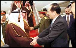 يستقبل اليوم رئيس جمهورية الصين الشعبية جيانج زيمين صاحب السمو الملكي الأمير سلطان بن عبدالعزيز نائب رئيس مجلس الوزراء ووزير الدفاع والطيران والمفتش العام الذي بدأ امس زيارة رسمية للصين.