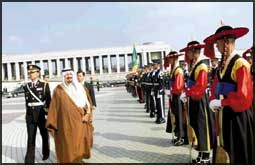 ومضى سموه يقول: نقدر لكوريا الجنوبية مواقفها المشرفة من القضايا الدولية وبالأخص فيما يتعلق بدعم عملية السلام في الشرق الأوسط في سبيل عودة الأراضي العربية المحتلة واحلال السلام العادل والشامل والدائم بالمنطقة.