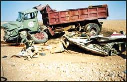 وذكر شهود عيان بأن قائد الهايلكس توفي وقت دخول السيارة الهايلكس تحت الشاحنة فيما تحولت الهايلكس الى قطع مجزأة من الحديد متناثرة صعب على الكثير معرفتها.